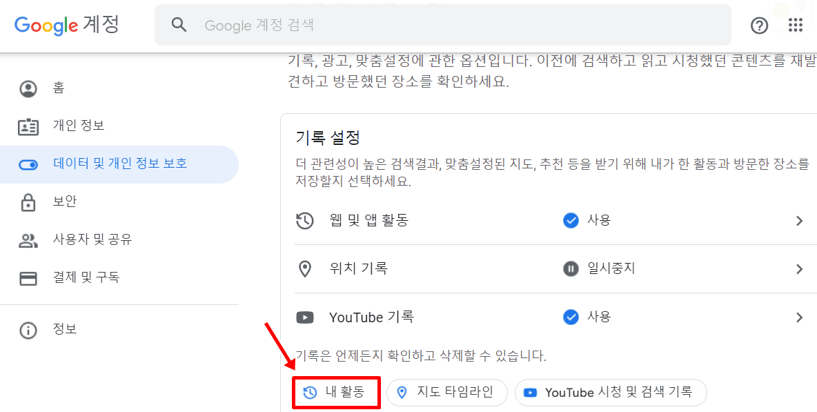 4. 내 활동을 클릭합니다.
