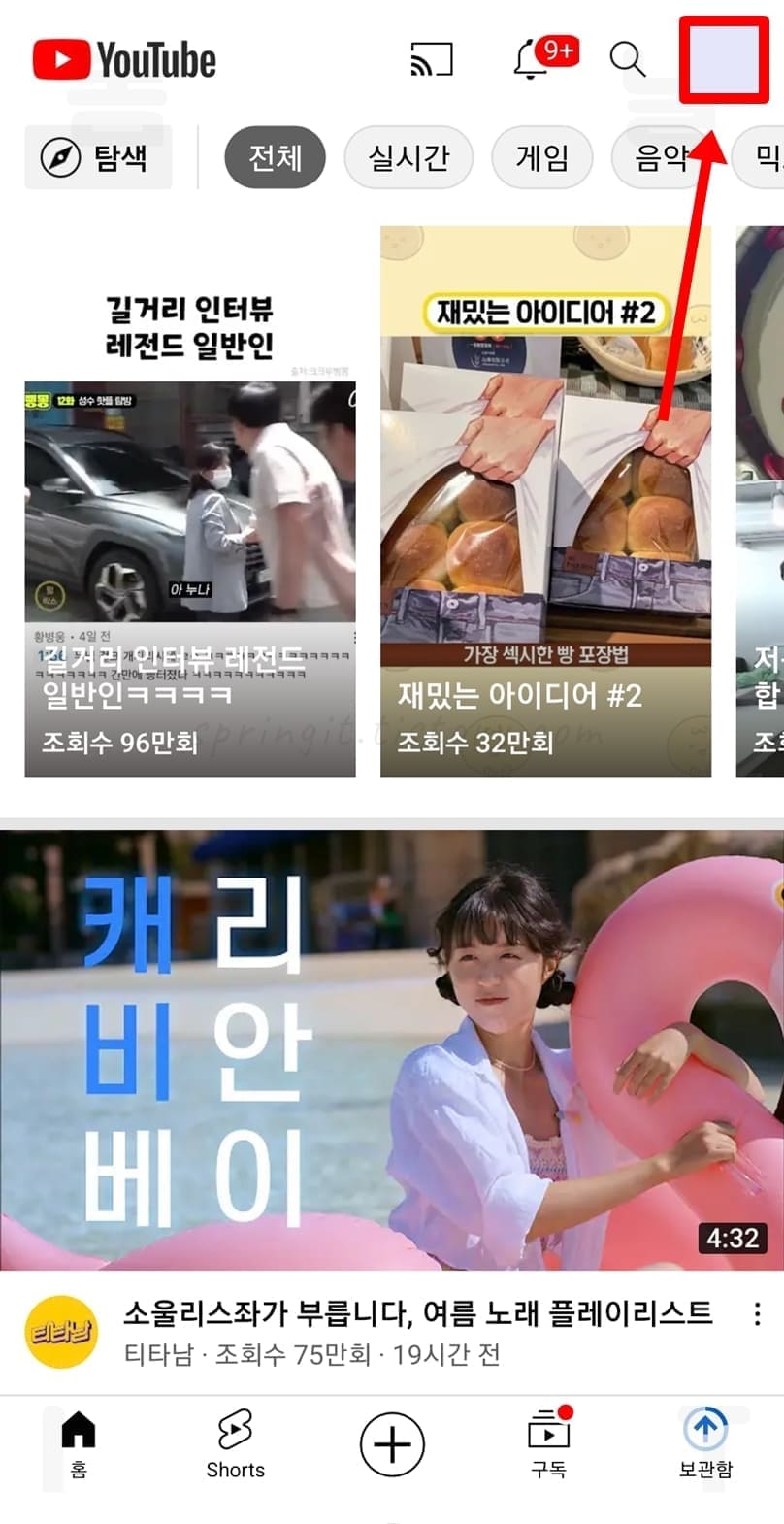 1. 모바일에서 유튜브 앱을 실행합니다.