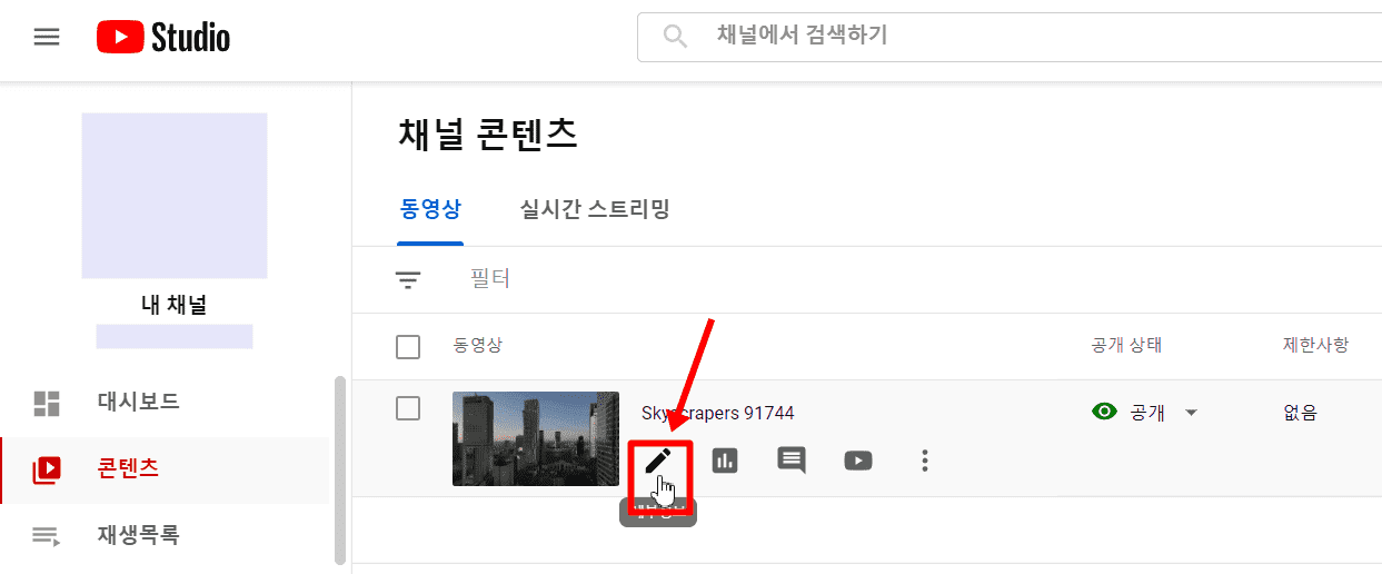 5. 비공개하고 싶은 동영상의 세부정보 편집 버튼을 누릅니다.