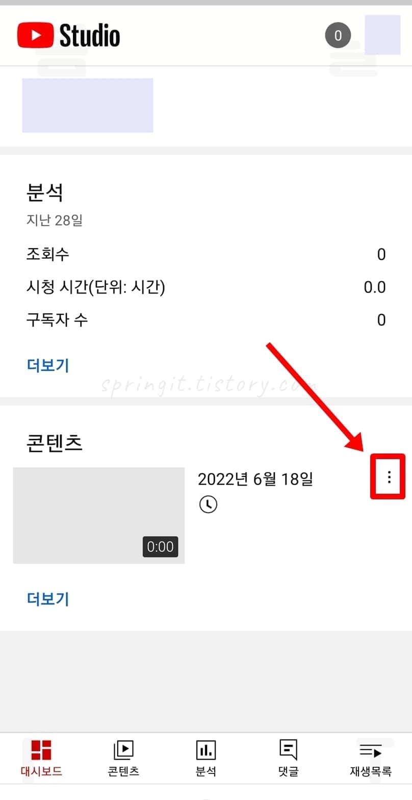4. 비공개하고 싶은 동영상에서 더보기 버튼을 클릭합니다.
