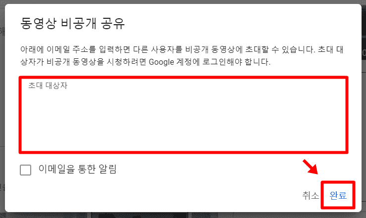 3. 다른 사용자를 비공개 동영상 재생이 가능하게 초대할 수 있습니다.