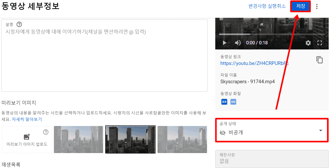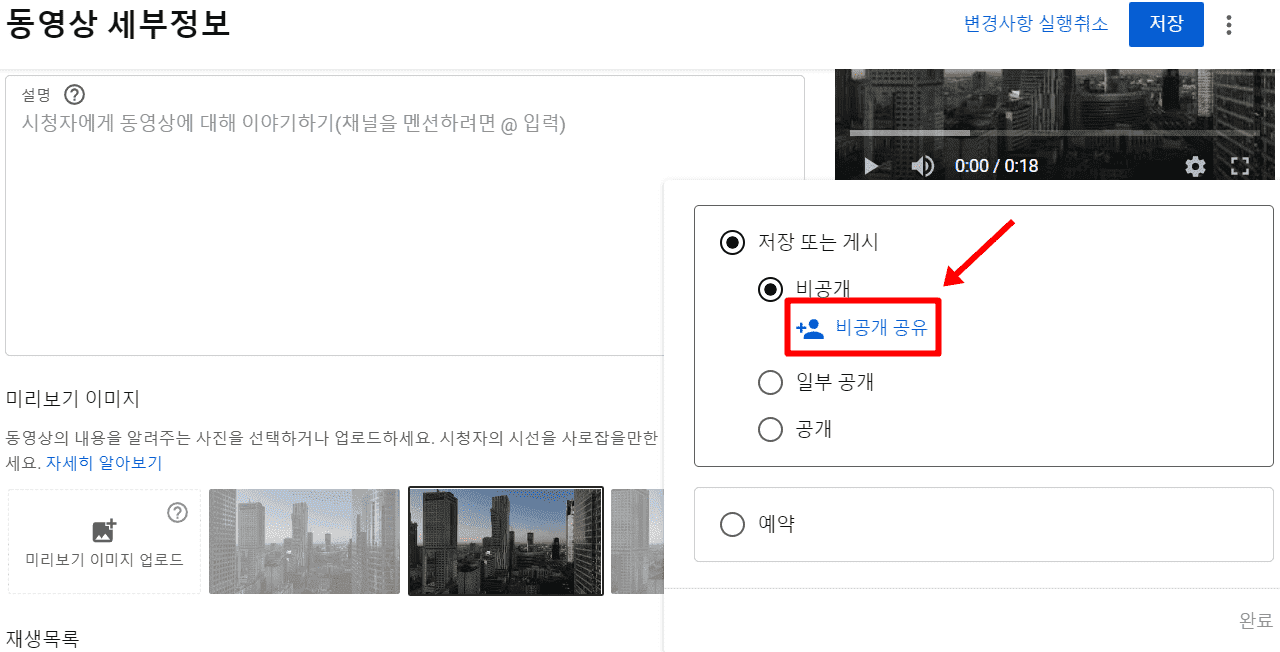 1. 동영상 세부정보 편집에서 비공개 공유를 클릭합니다.