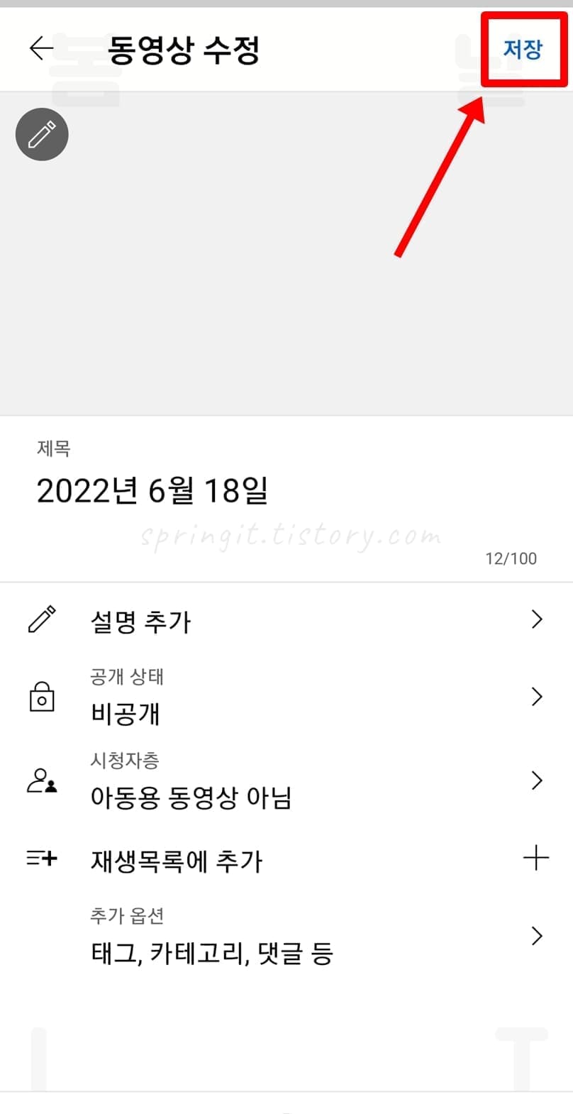 모바일에서 유튜브 동영상 비공개 설정 방법
