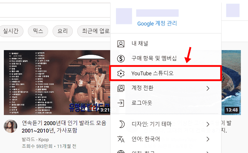 1. PC에서 유튜브 사이트에 로그인합니다.