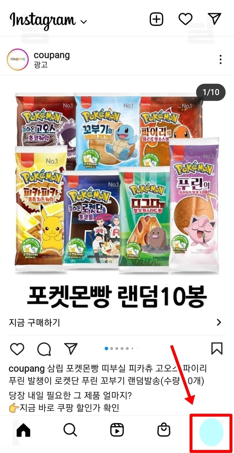 1. 인스타그램 앱에서 내 프로필을 클릭합니다.