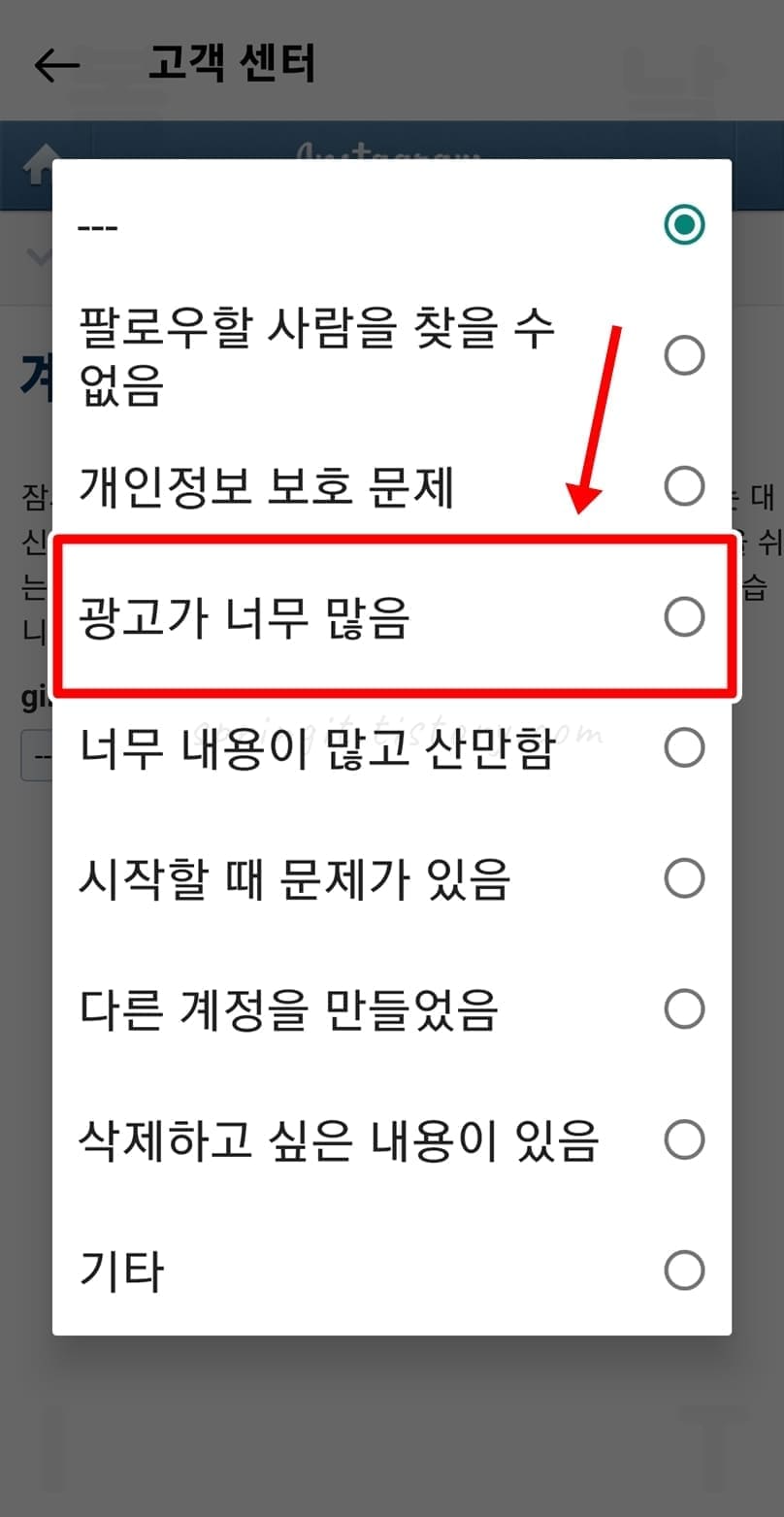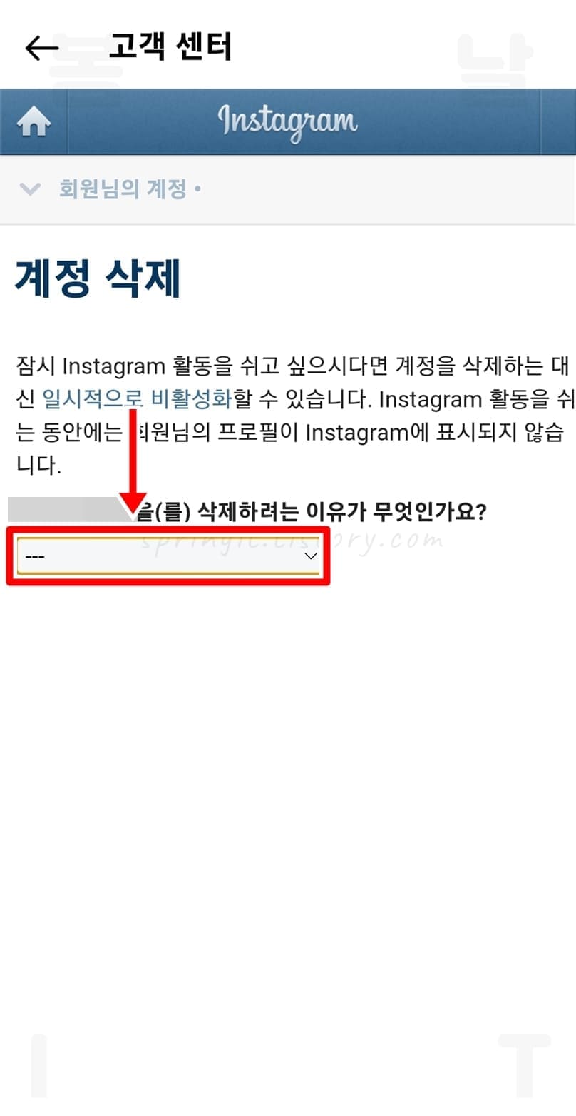 9. 삭제하려는 이유가 무엇인가요? 아래의 박스를 클릭합니다.