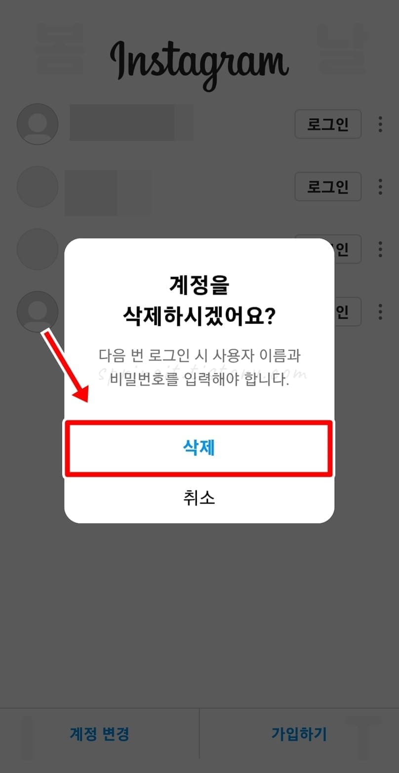 인스타그램 부계정 로그인 목록에서 삭제 방법