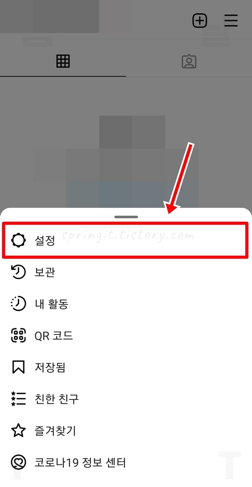 2. 내 프로필 화면에서 상단 우측 서랍 버튼을 누릅니다.