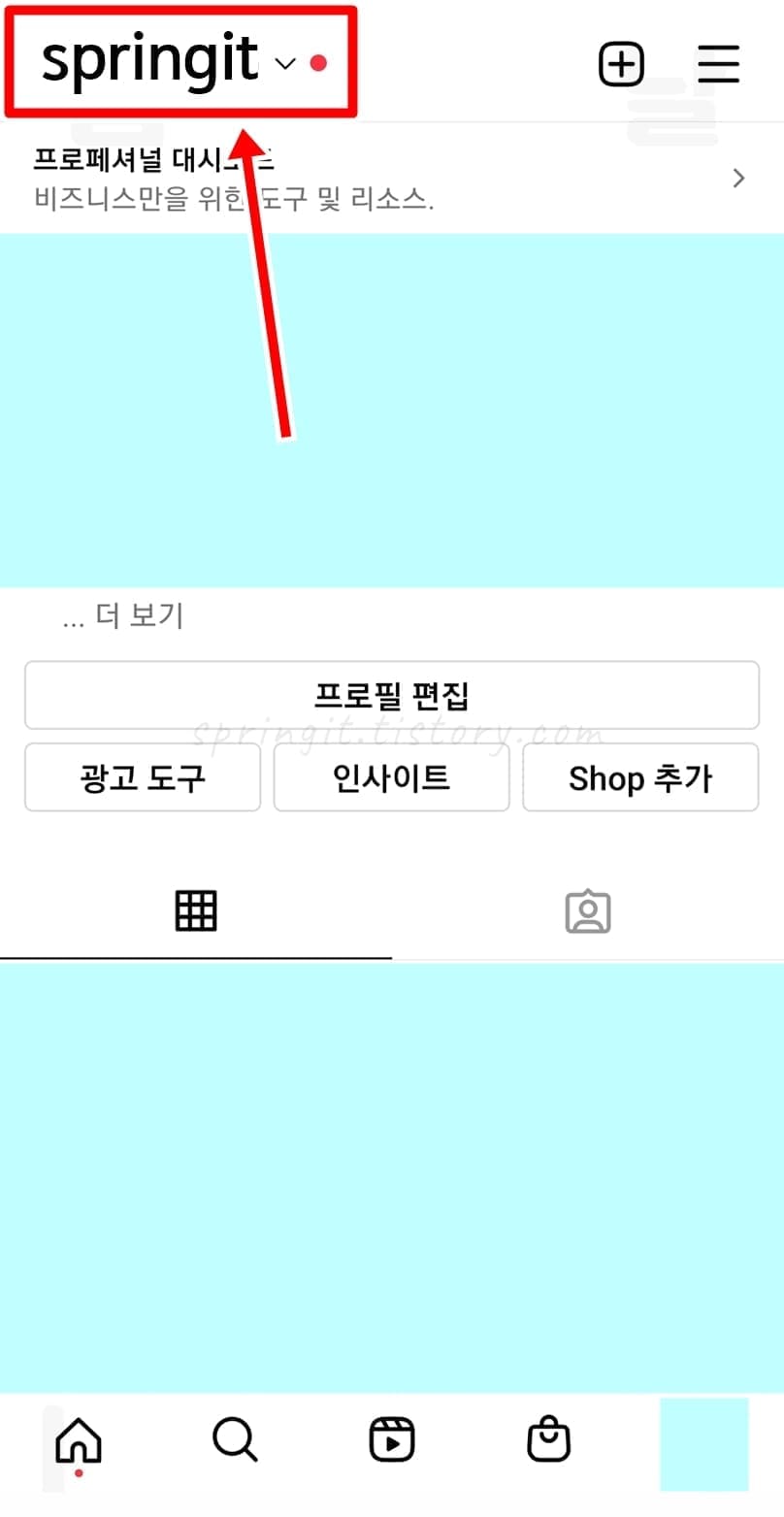 2. 상단 좌측에서 내 인스타 아이디를 클릭합니다.