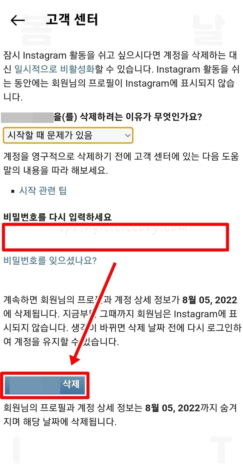12. 아래의 삭제를 클릭하면 인스타 부계정이 삭제됩니다.