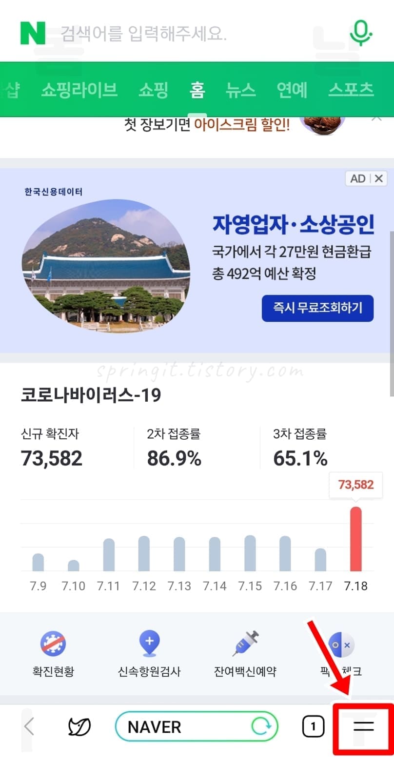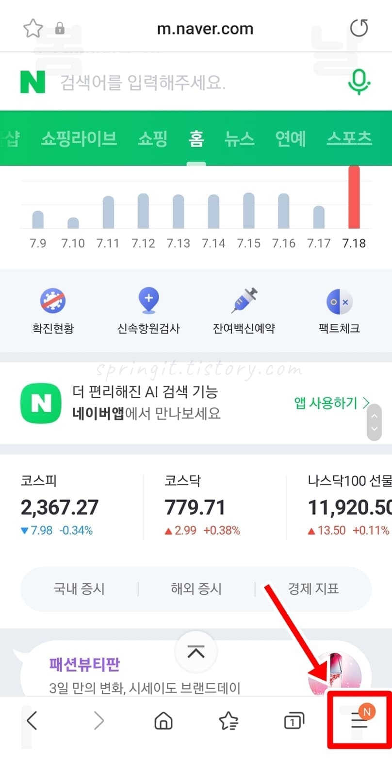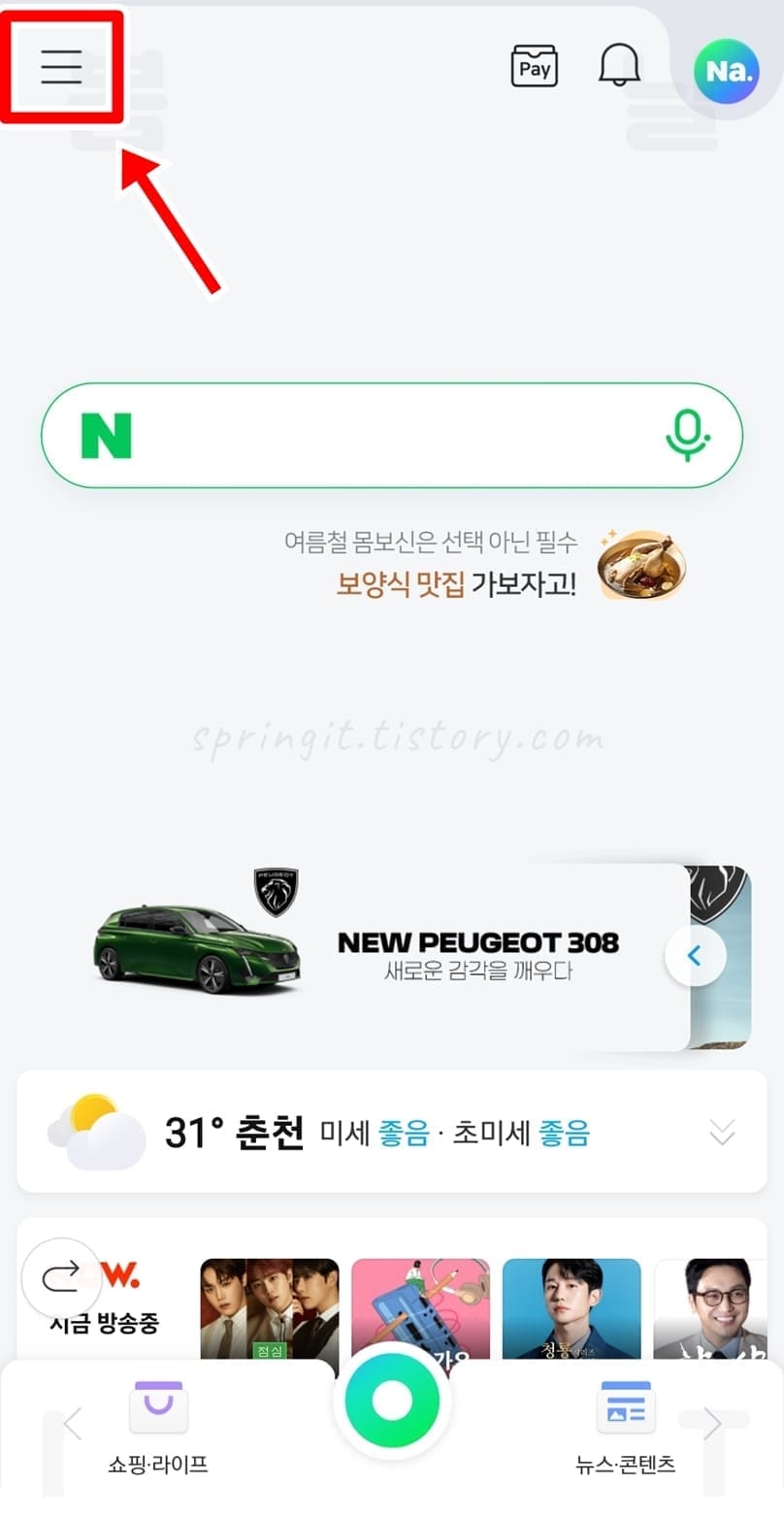 1. 갤럭시에서 네이버 앱을 실행합니다.