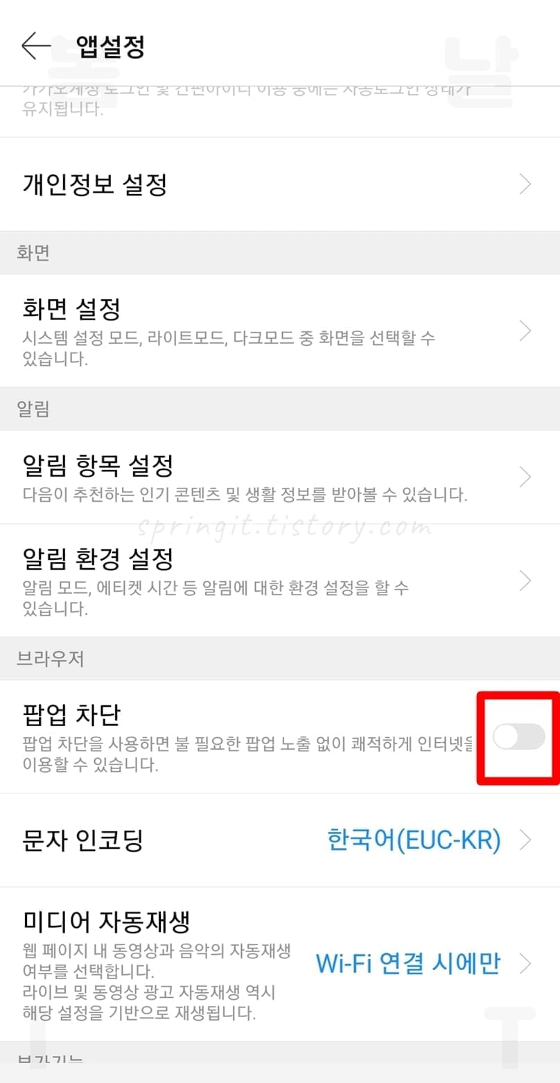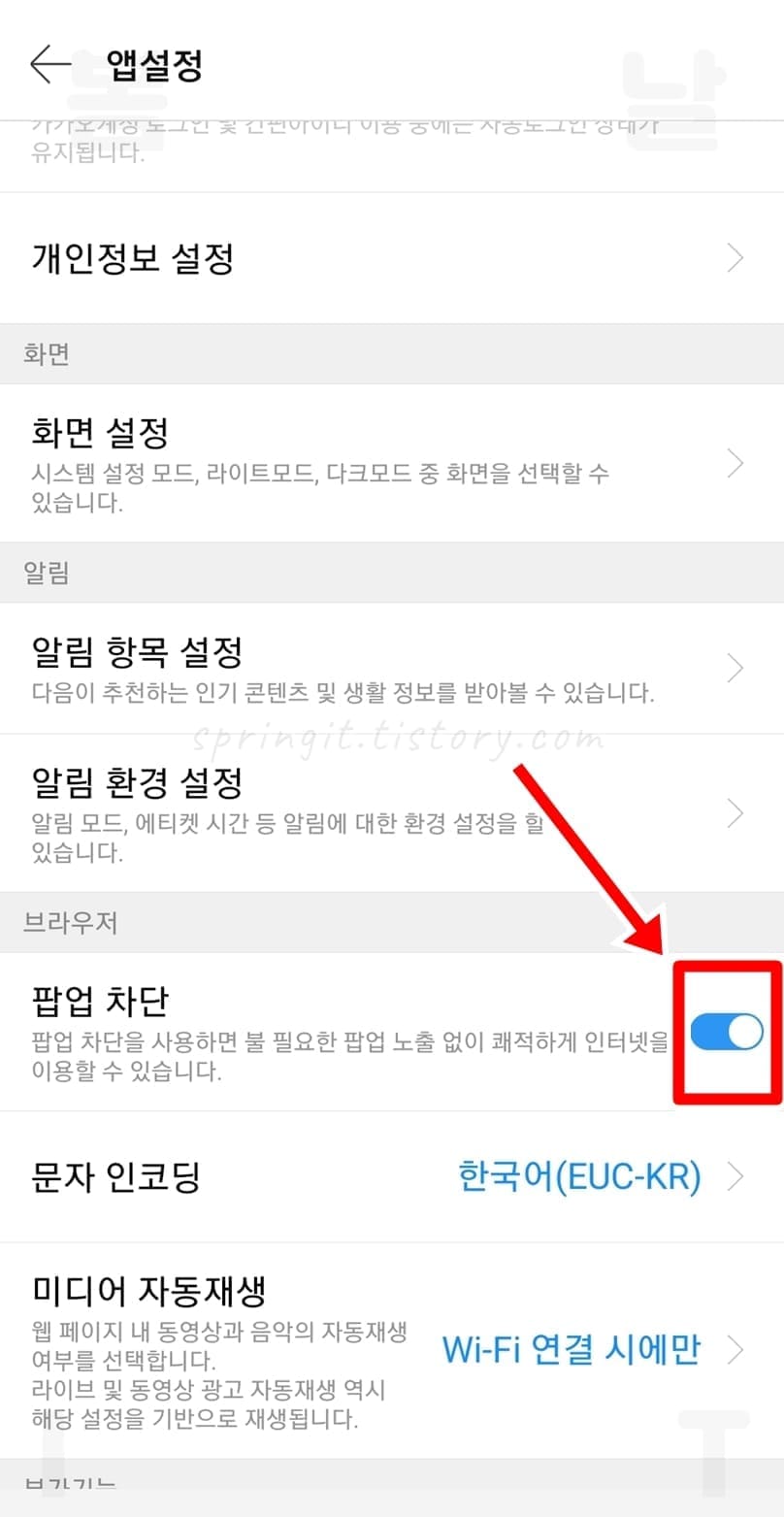 갤럭시에서 다음 앱 팝업 차단 해제하기
