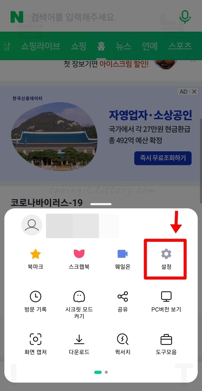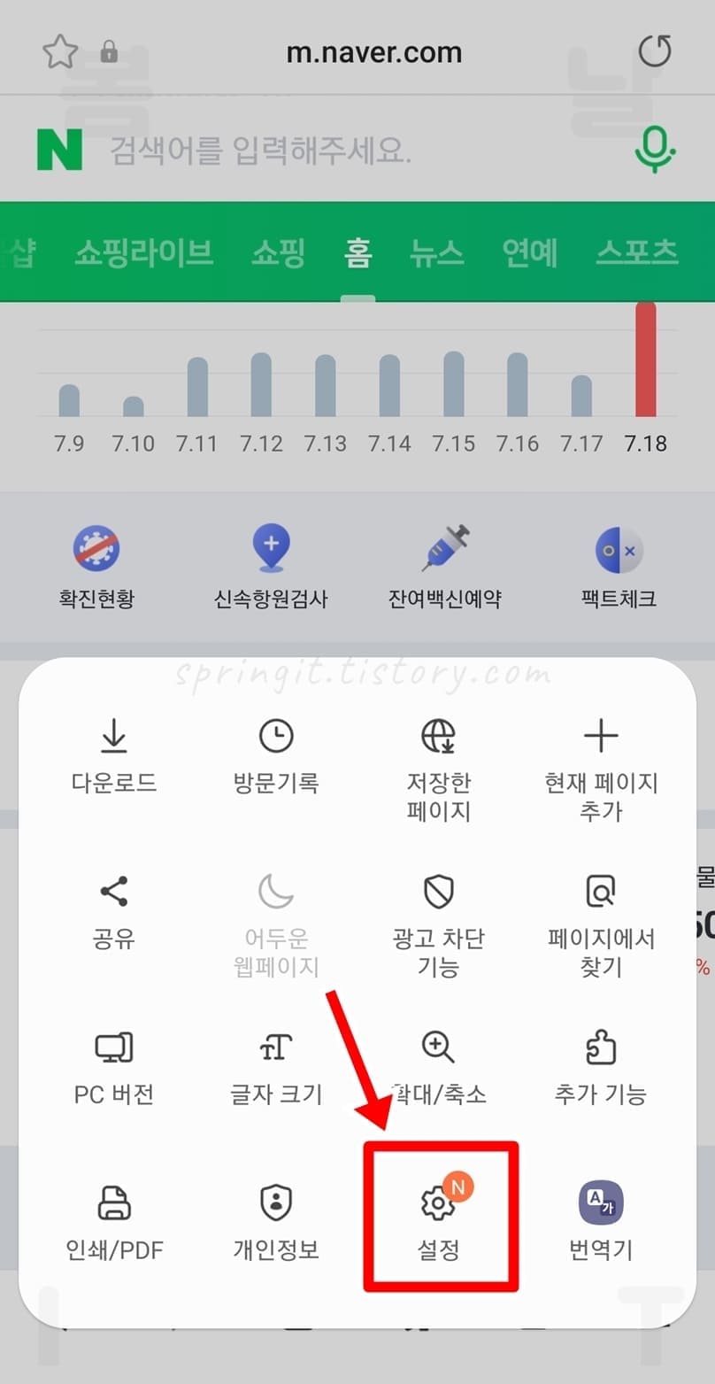 갤럭시 네이버 앱 팝업 차단 해제하기