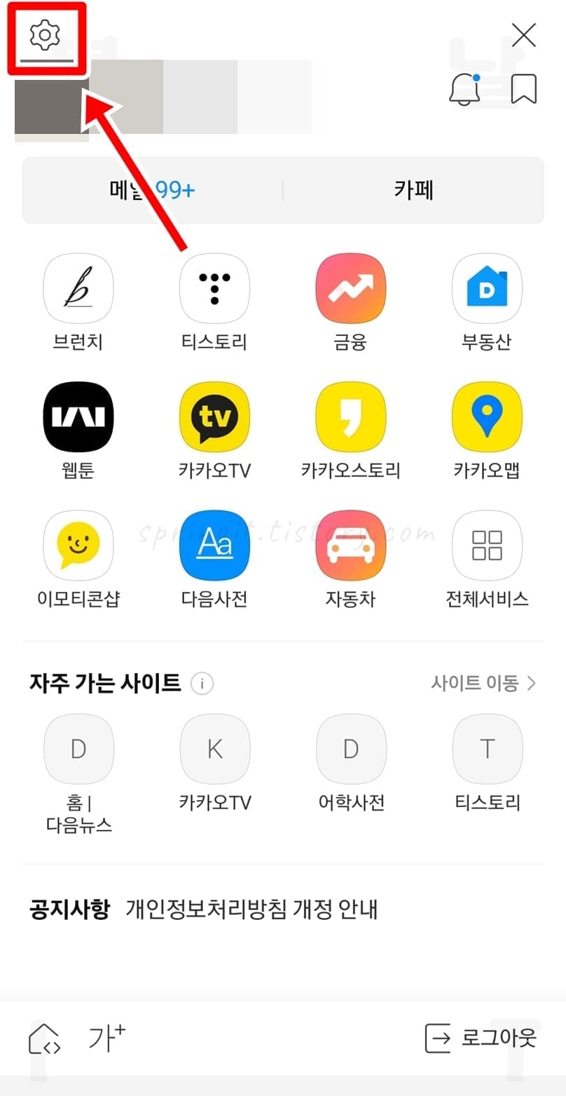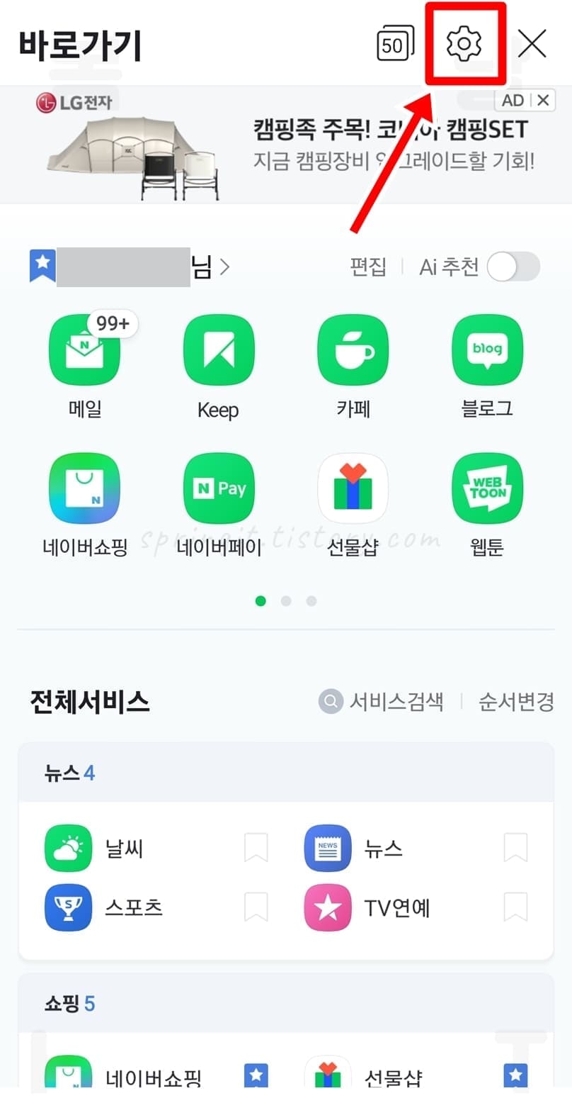 3. 상단의 톱니바퀴 설정 버튼을 클릭합니다.