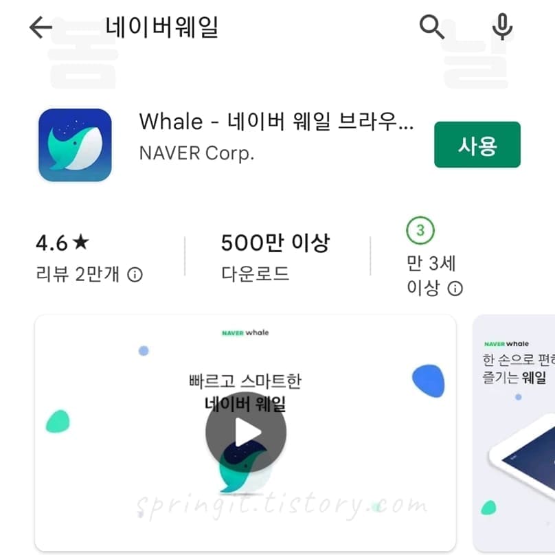 1. 갤럭시에서 Whale 네이버 웨일 앱을 실행합니다.