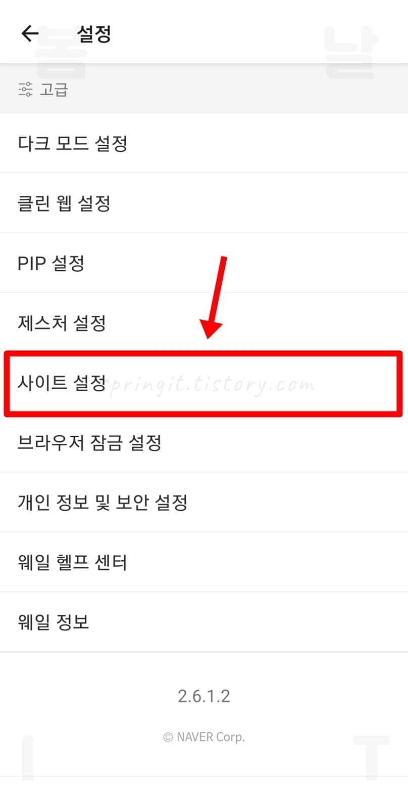 갤럭시에서 네이버 웨일 앱 팝업 차단 해제하기