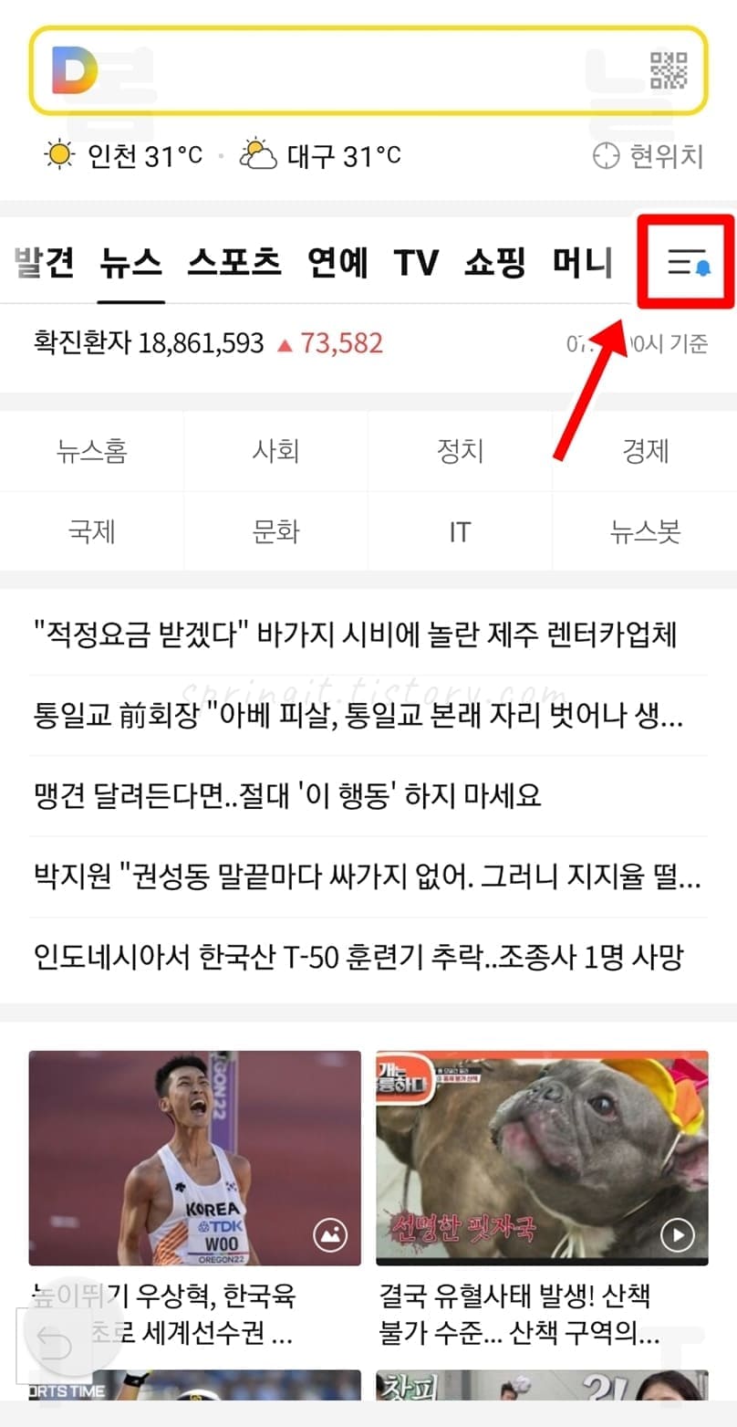 2. 좌측 상단 더보기 메뉴 버튼을 클릭합니다.