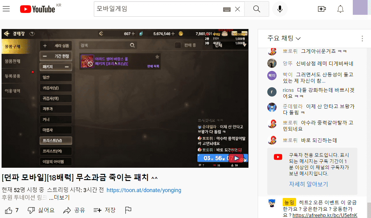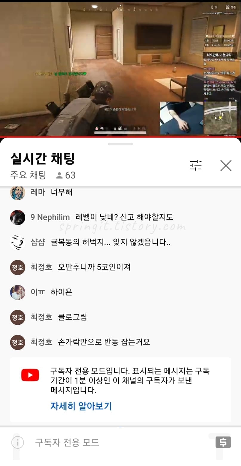 하지만 유튜브에서는 라이브 방송 서비스를 지원하고 있으며 다른 방송 플랫폼과 달리 로그인을 하지 않아도 고화질 시청도 할 수 있고, 내 유튜브 계정으로 곧바로 댓글을 달면서 소통할 수 있습니다. 그래서 저는 유튜브 라이브 방송을 자주 시청하고 있는데요. 깔끔한 도네 시스템 팝업부터 유튜브 구독자만 채팅을 칠 수 있는 시스템등 만족도 높게 이용하고 있는 중입니다.