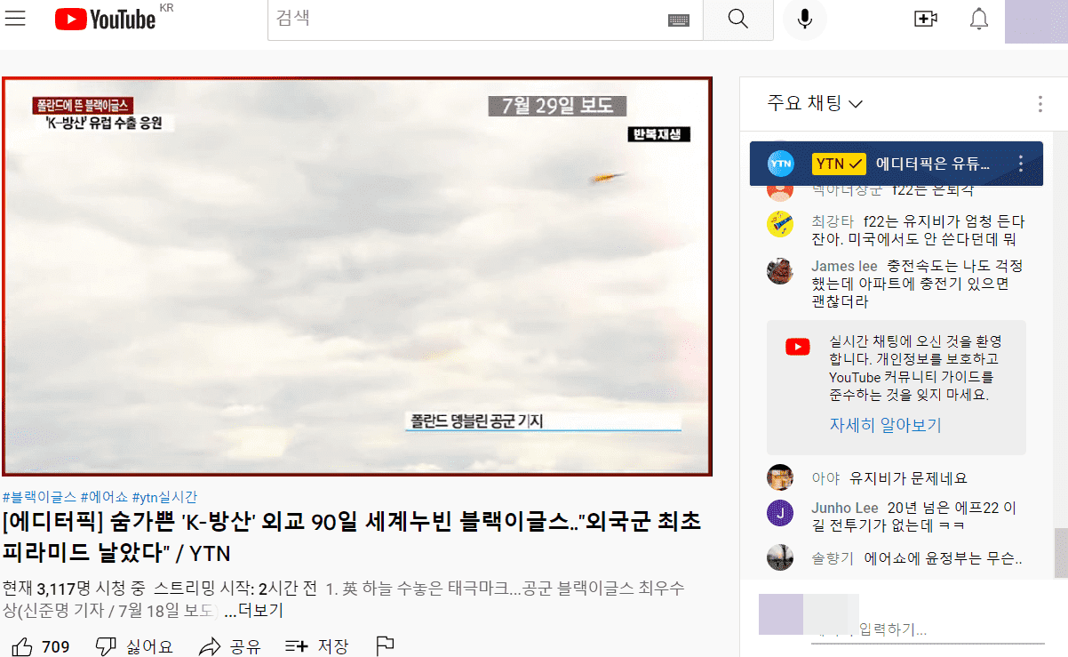 PC에서 유튜브 라이브 방송 보는법