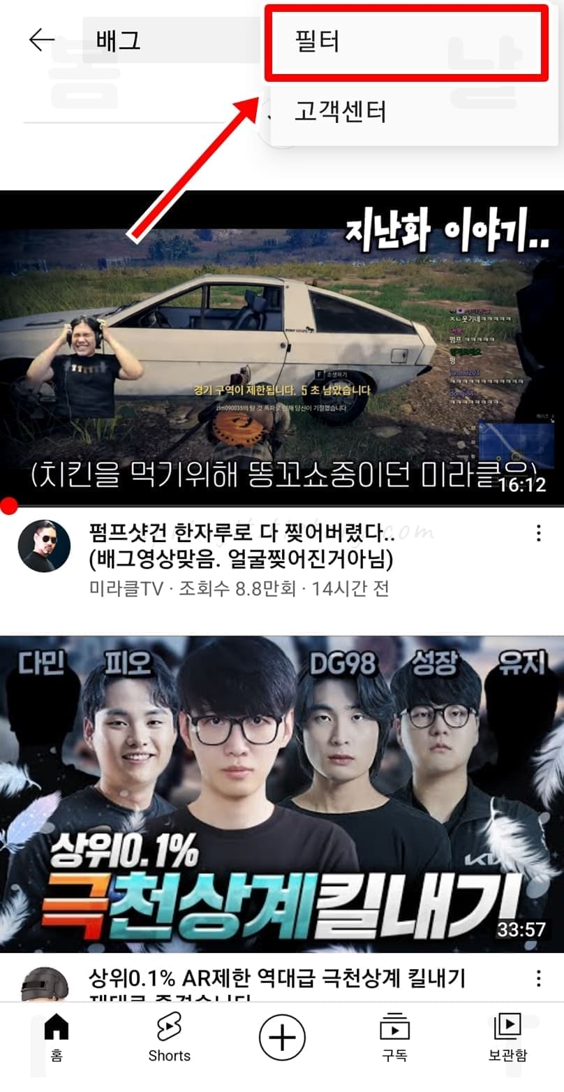 2. 필터를 누릅니다.