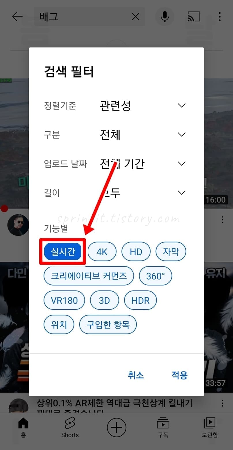 보고싶은 주제의 라이브 방송 찾는 방법