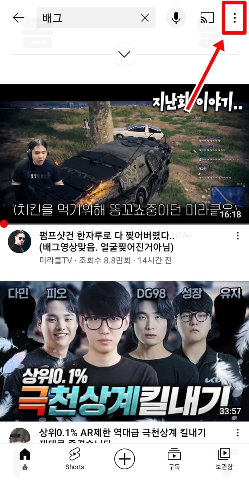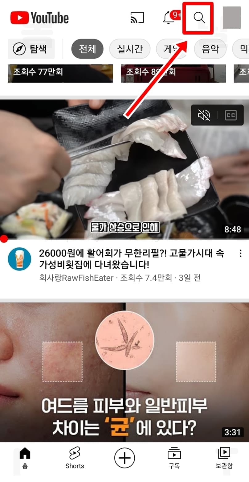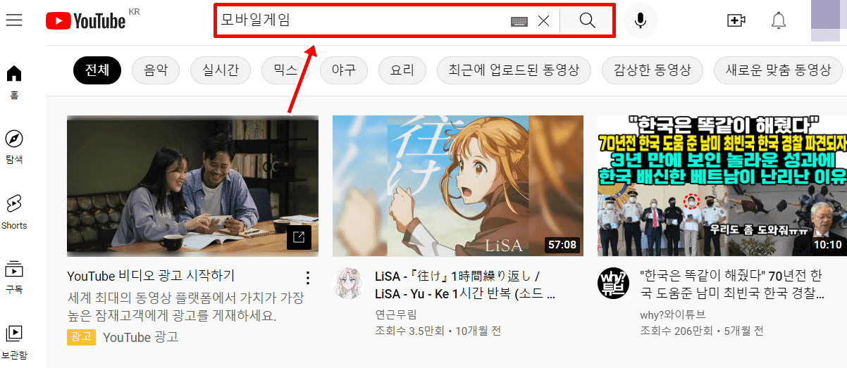 1. 유튜브 검색창에서 보고 싶은 주제를 검색합니다.