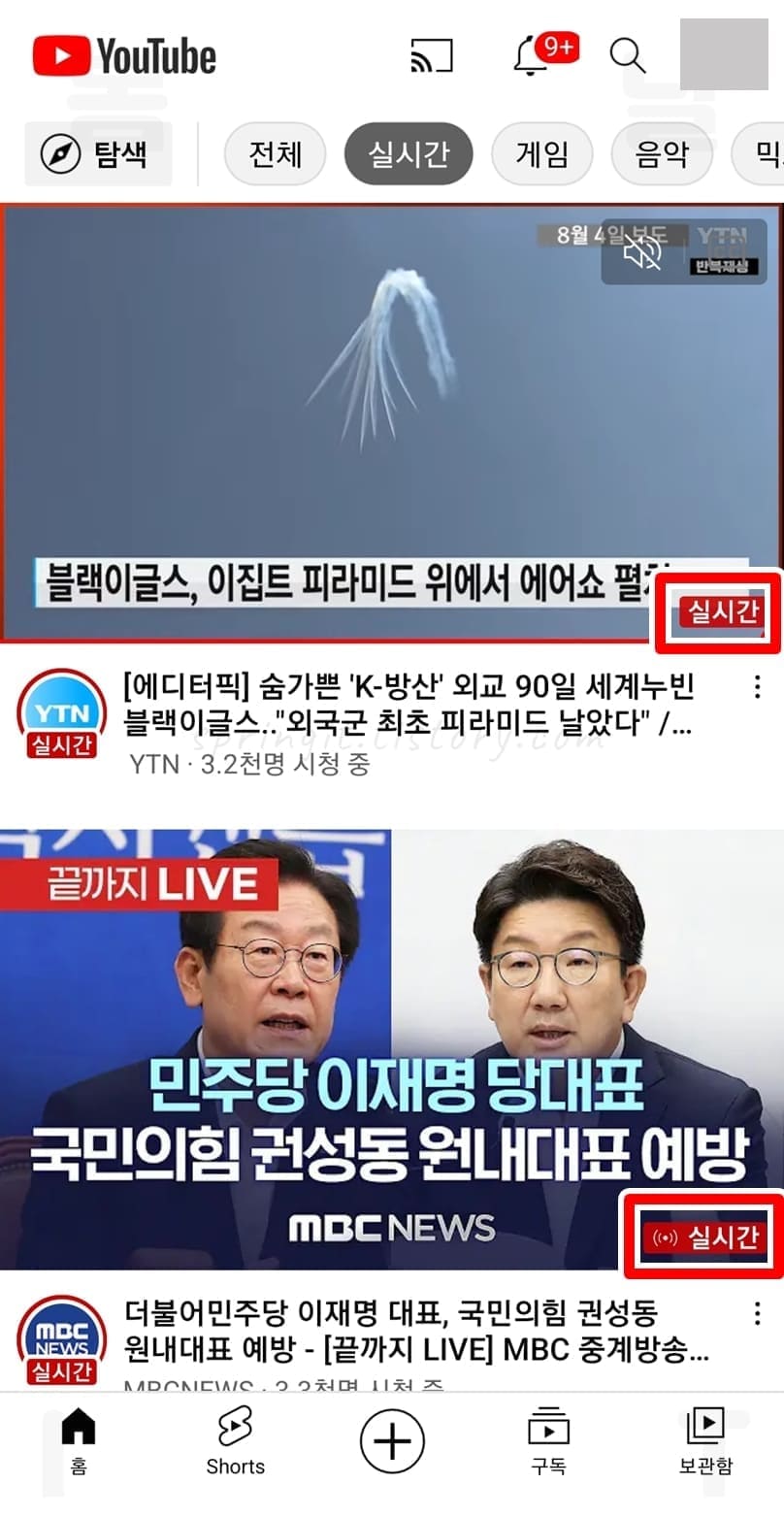 모바일에서 유튜브 라이브 방송 보는법