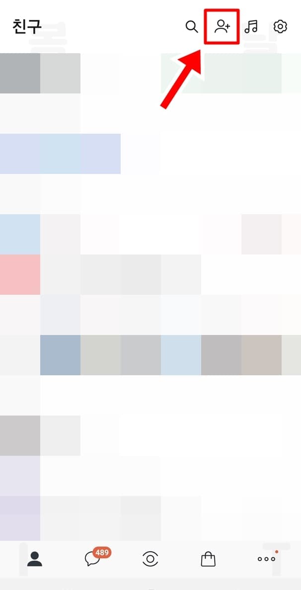 1. 카톡 친구목록 상단에서 사람모양+ 버튼을 클릭하세요.