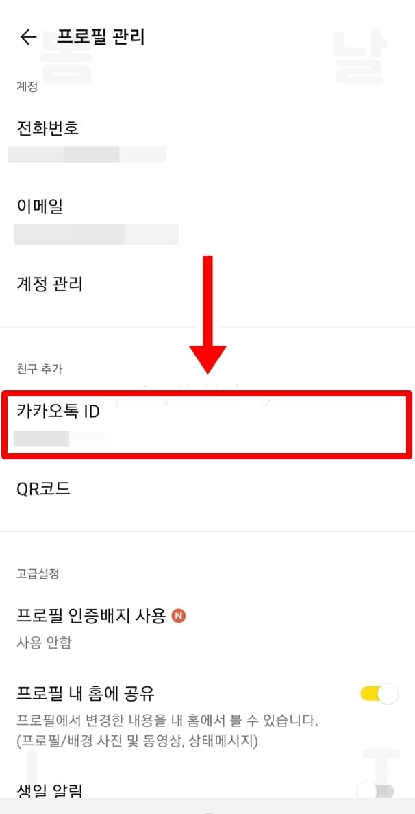 카카오톡 검색용 아이디 확인 및 변경 방법