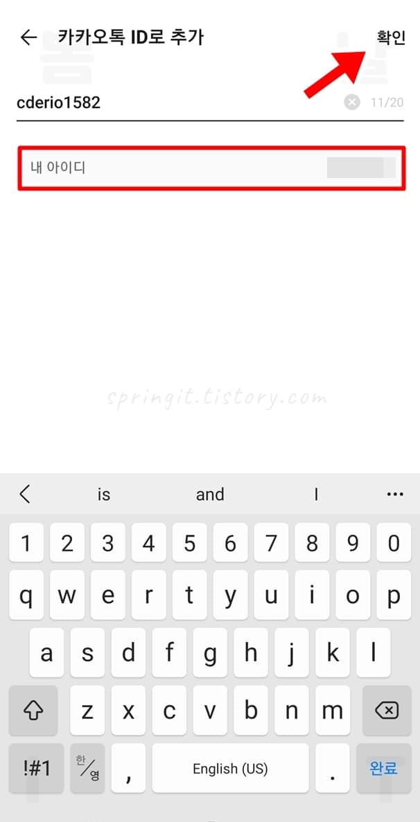 3. 친구 아이디를 입력하고 확인을 클릭하세요.
