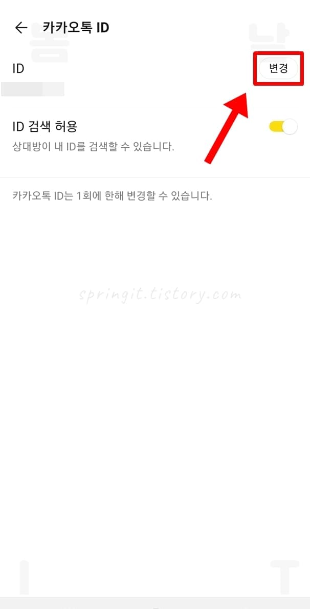 - 카카오톡 검색용 ID는 1번만 변경할 수 있음!