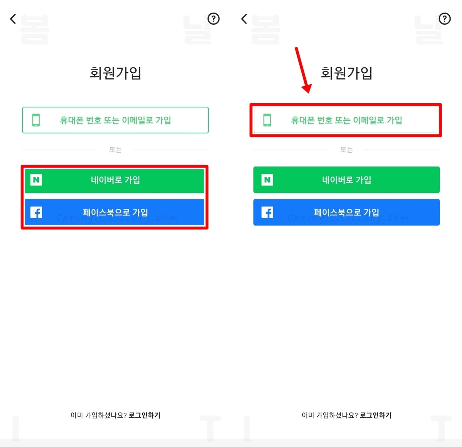 4. 휴대폰 번호 또는 이메일로 가입을 선택합니다.
