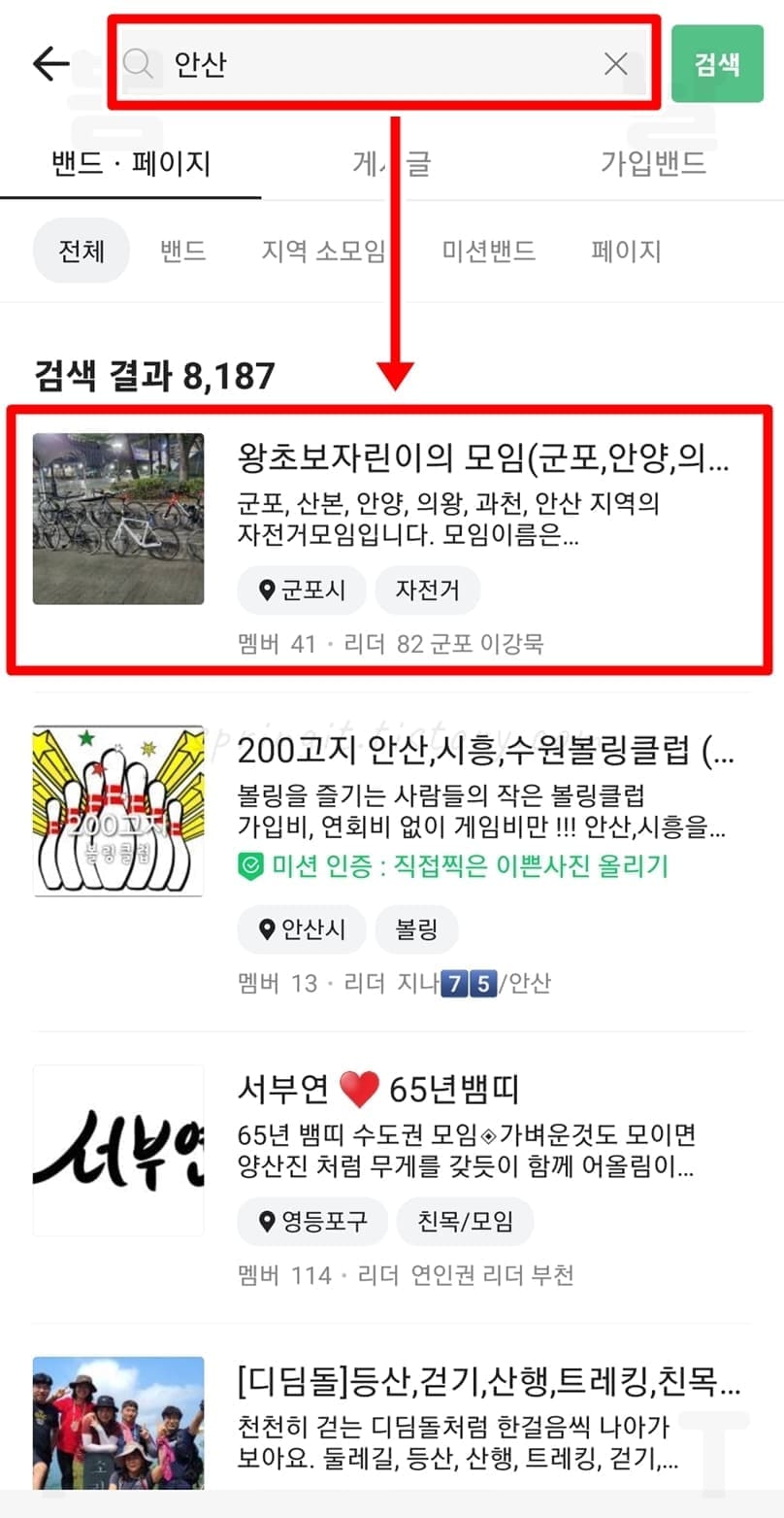 8. 검색 결과에서 가입하고 싶은 밴드를 선택합니다.
