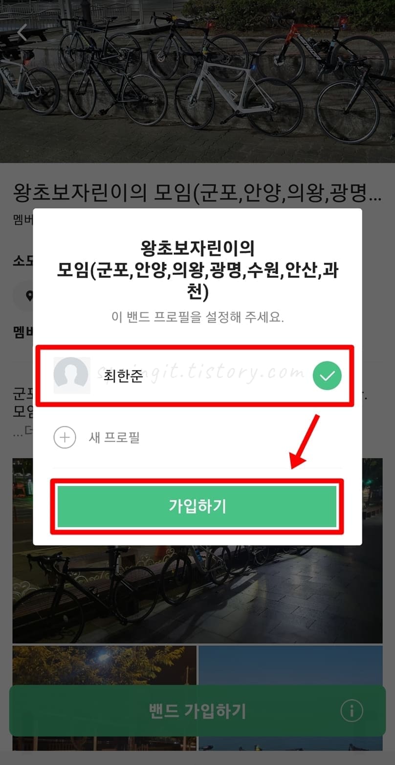 7. 내 밴드 프로필을 선택하고 가입하기를 클릭합니다.