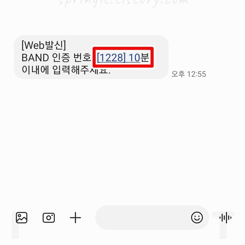 8. 휴대폰번호로 수신된 밴드 인증번호 문자를 확인합니다.