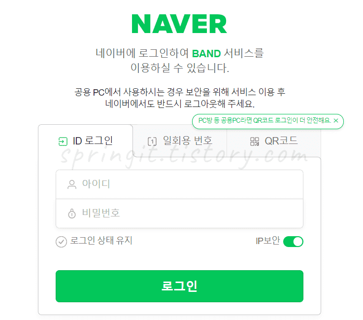 1. 컴퓨터에서 네이버 밴드 사이트를 실행합니다.