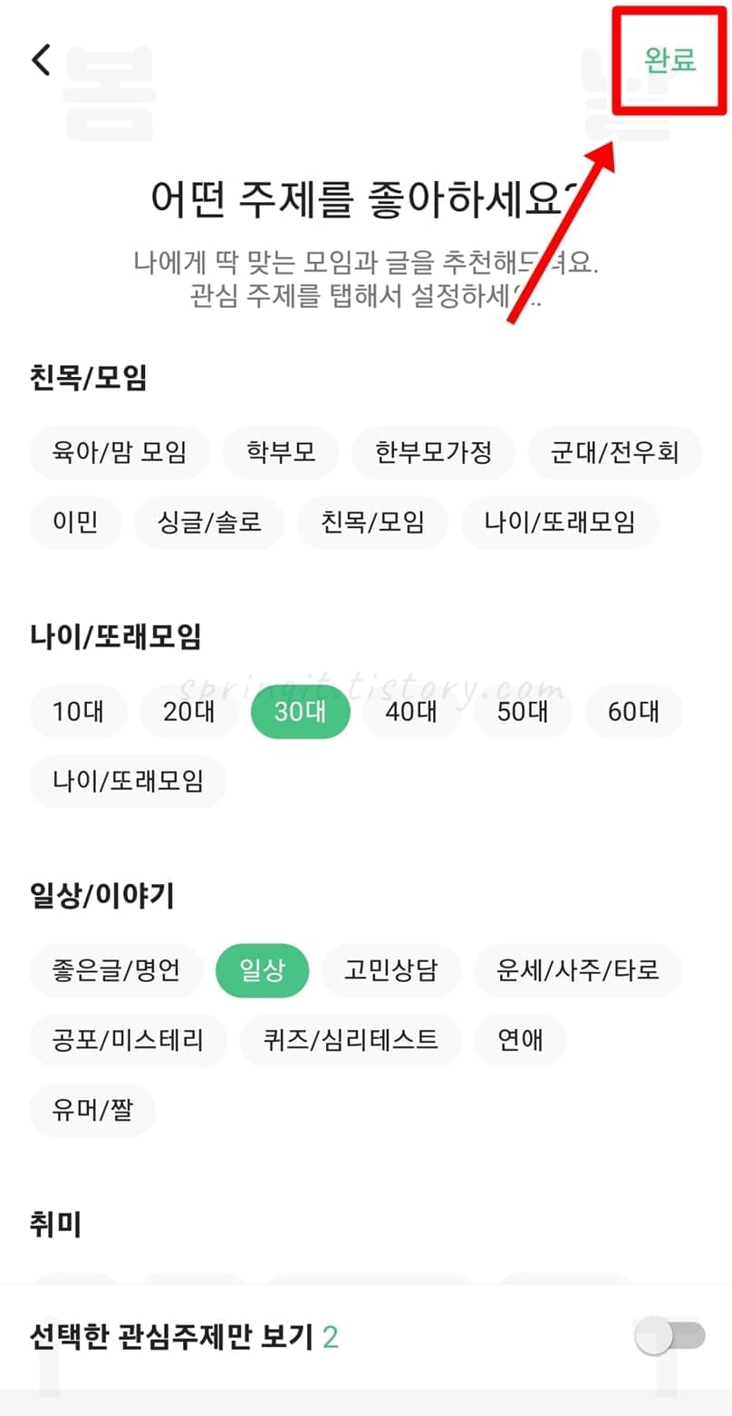 3. 내가 관심있는 주제를 모두 선택합니다.