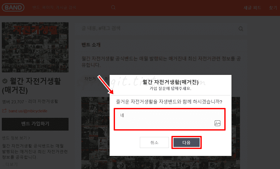 5. 참여하고 싶다면 밴드 가입하기 버튼을 클릭합니다.