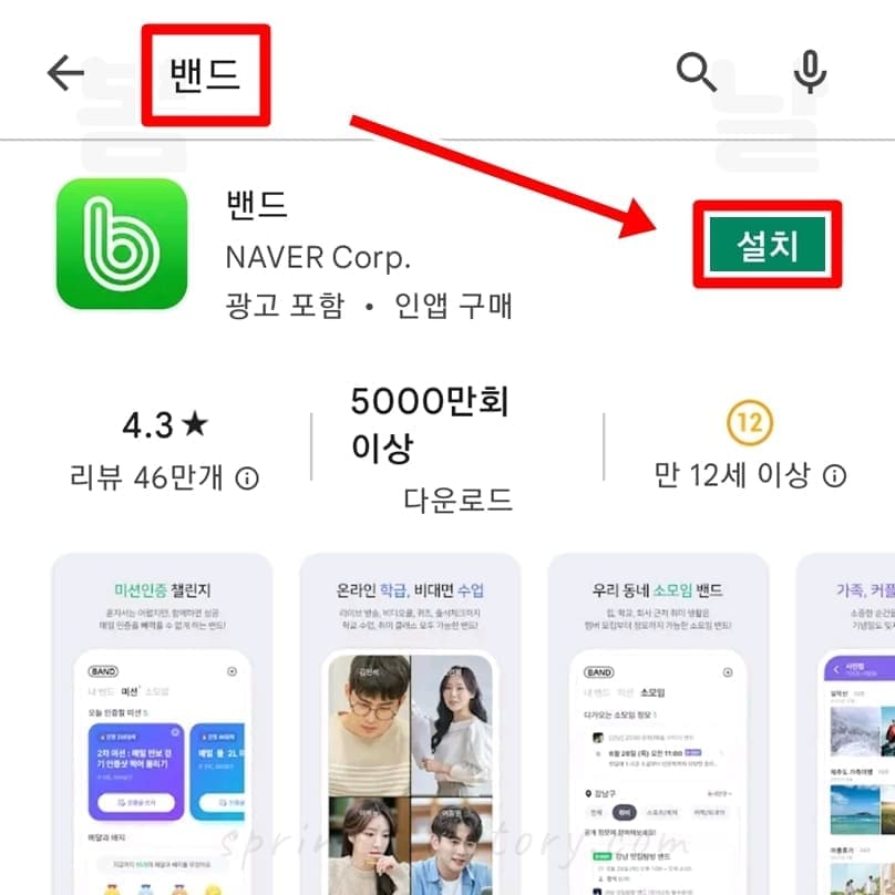 2. 밴드를 검색하고 어플을 다운로드 설치합니다.