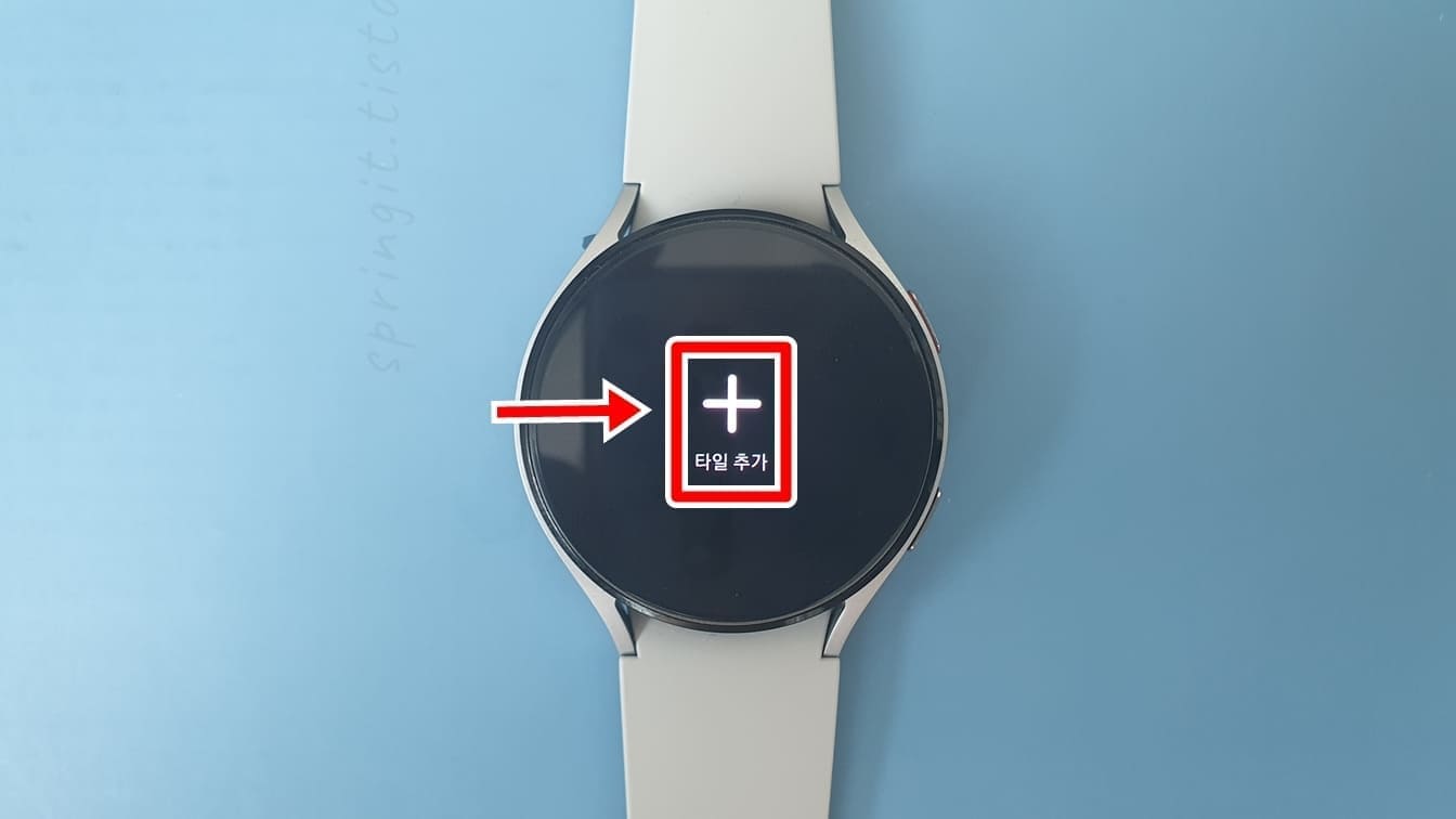 1. 갤럭시워치를 우측으로 계속 밀어서 +타일추가 창을 실행합니다.