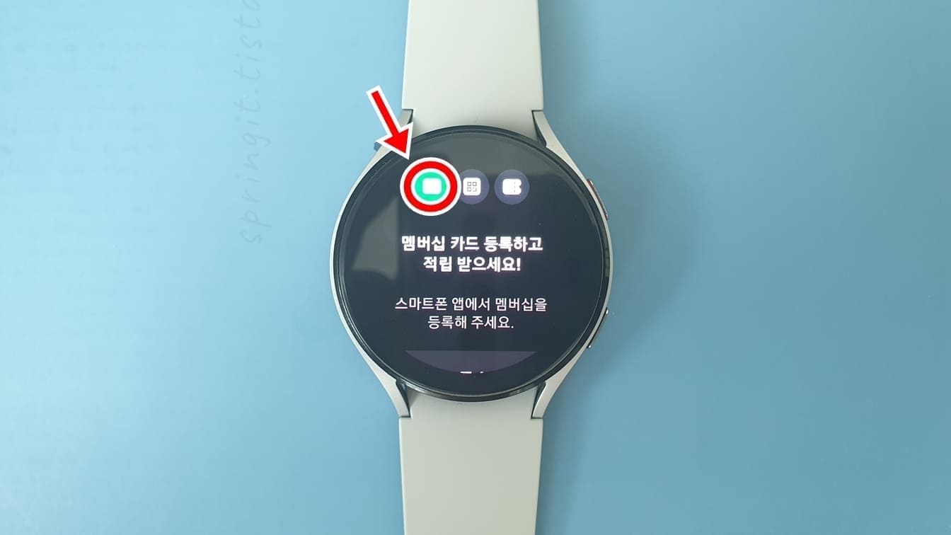 갤럭시워치에서 네이버 멤버십 카드 사용 방법: 갤럭시워치 실행 > 좌측 상단 버튼 클릭 > 멤버십 카드 등록 후 적립 사용