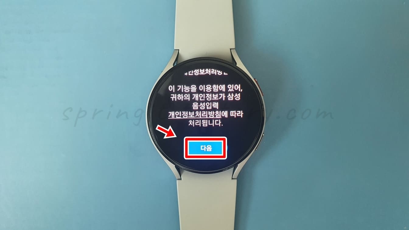 7. 갤럭시워치에서 전원버튼을 두번 연속해서 누릅니다.