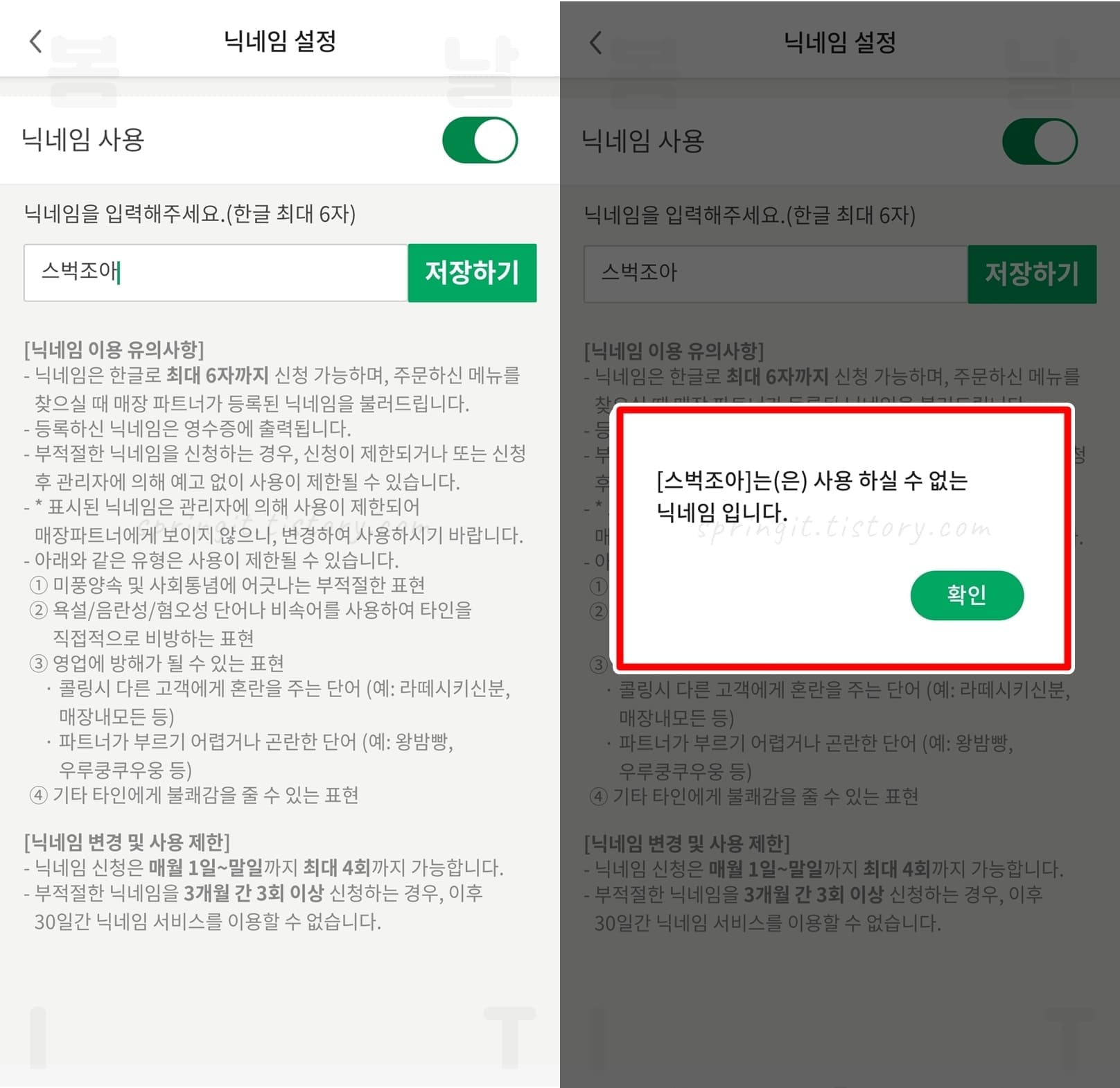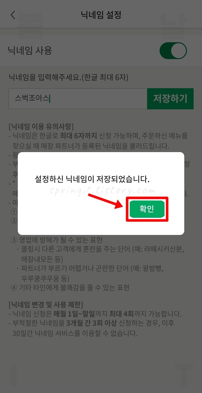 스타벅스 닉네임 변경 주의사항