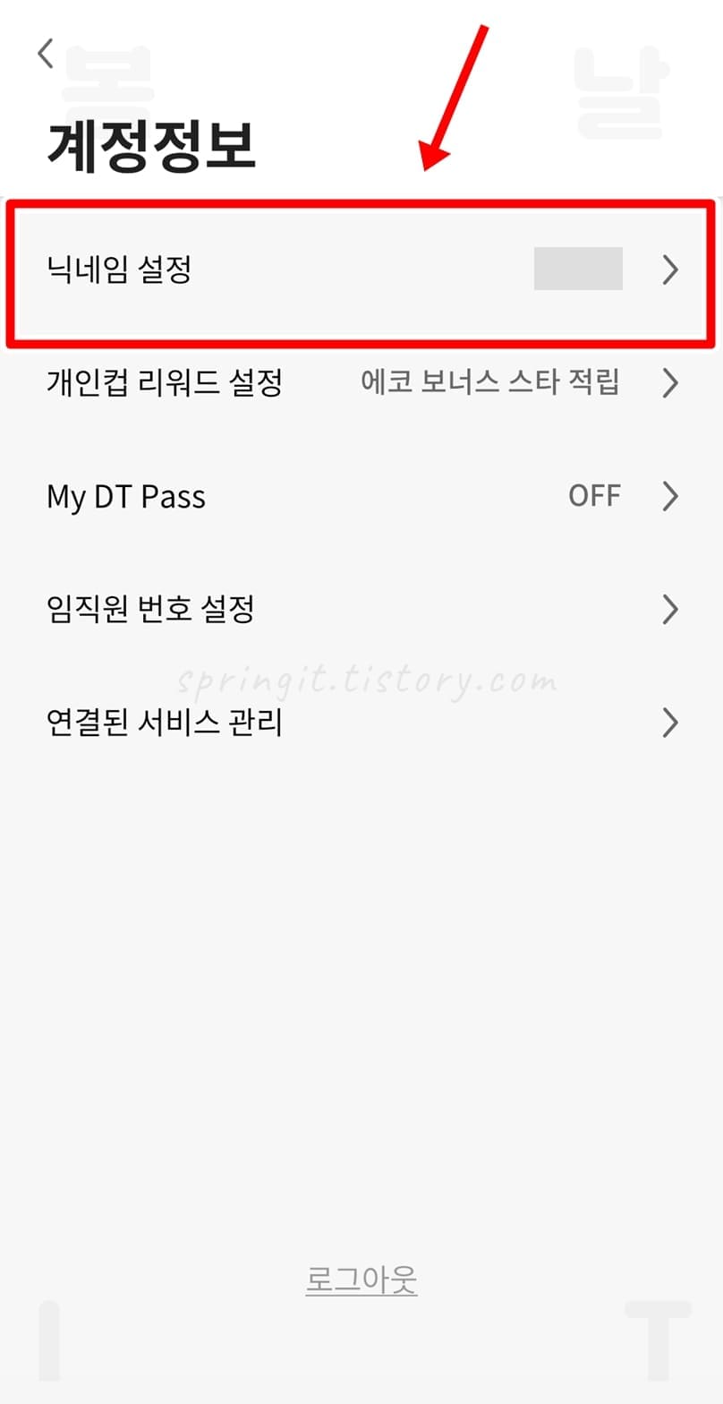 이곳에서 현재 설정된 나의 스타벅스 닉네임을 확인할 수 있습니다.