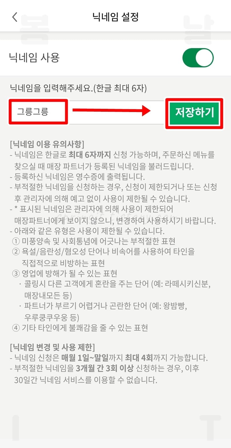 - *표시된 닉네임은 관리자에 의해 사용이 제한되어 매장파트너에게 보이지 않으니 변경하여 사용하시길 바랍니다.