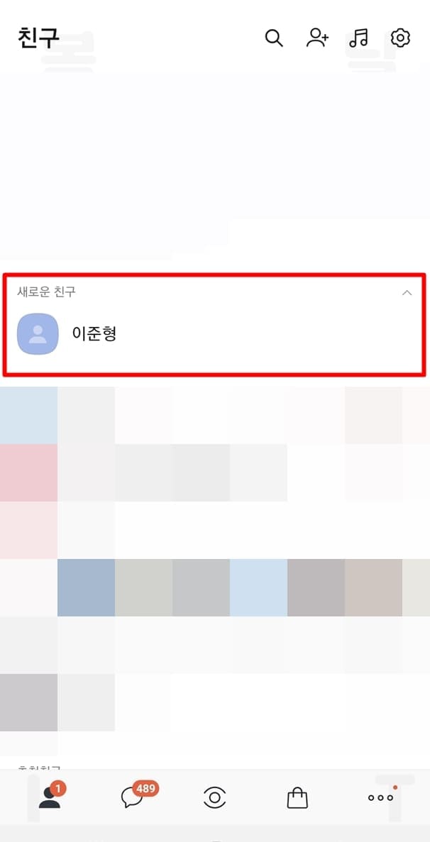 친구목록을 보시면 새로운 친구 기능에서 카톡 아이디로 등록한 친구를 확인할 수 있습니다. 이렇게 상대방 휴대폰번호를 몰라도 카톡으로 추가해서 채팅을 할 수 있으니 편리하게 사용해보세요.