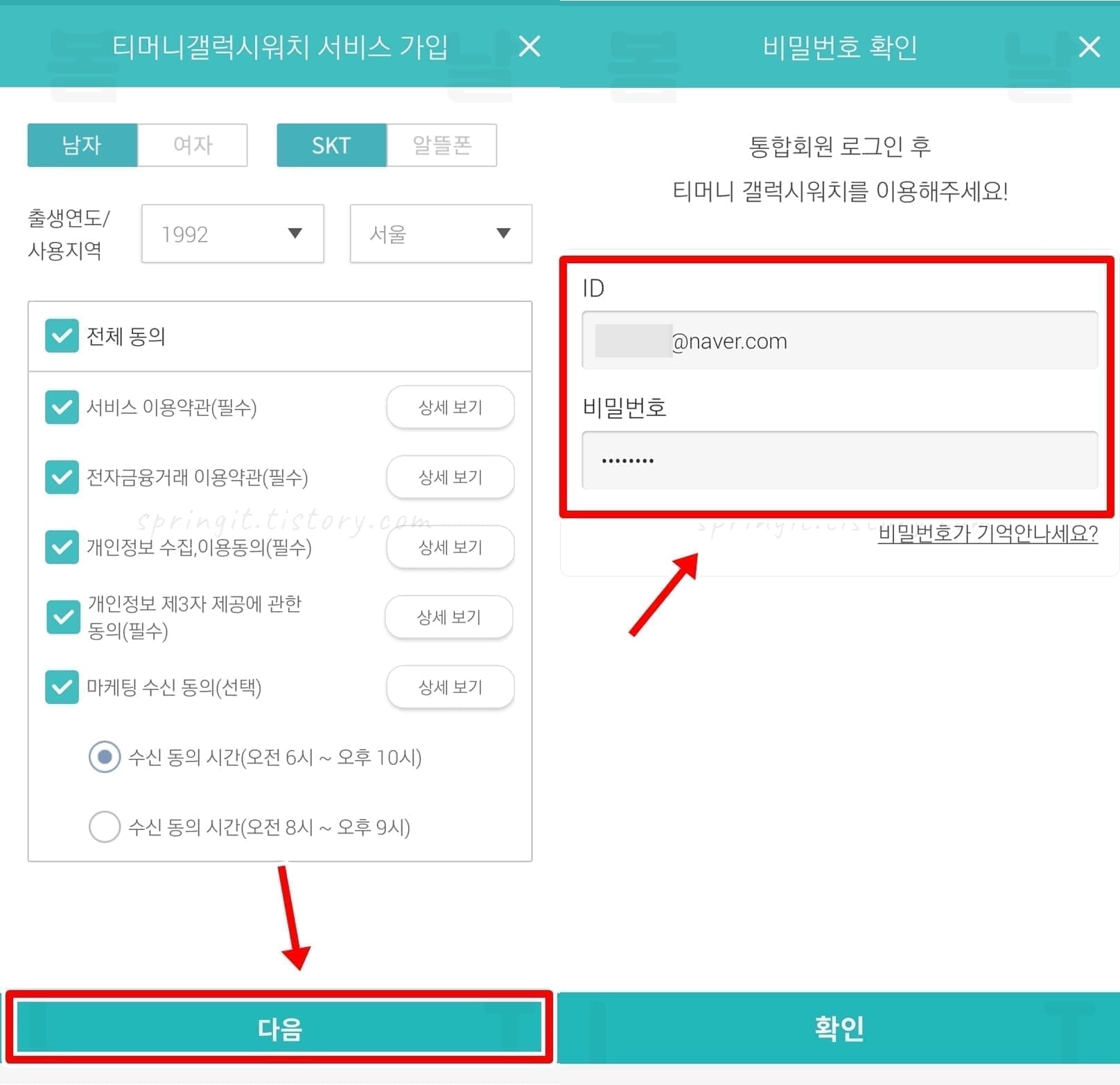 19. 개인정보 입력 및 약관동의 후 통합회원으로 로그인합니다.