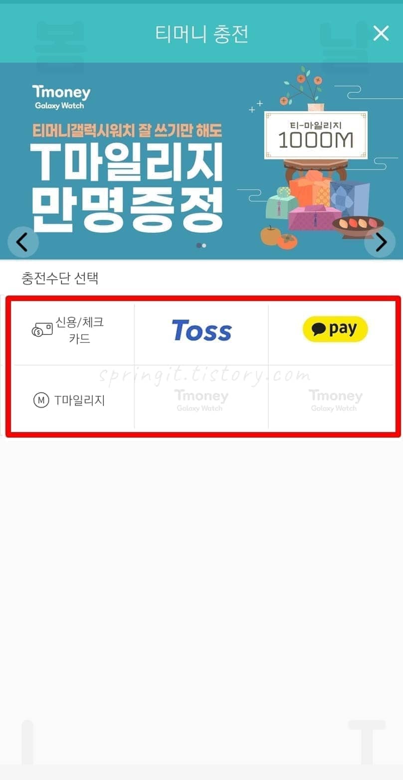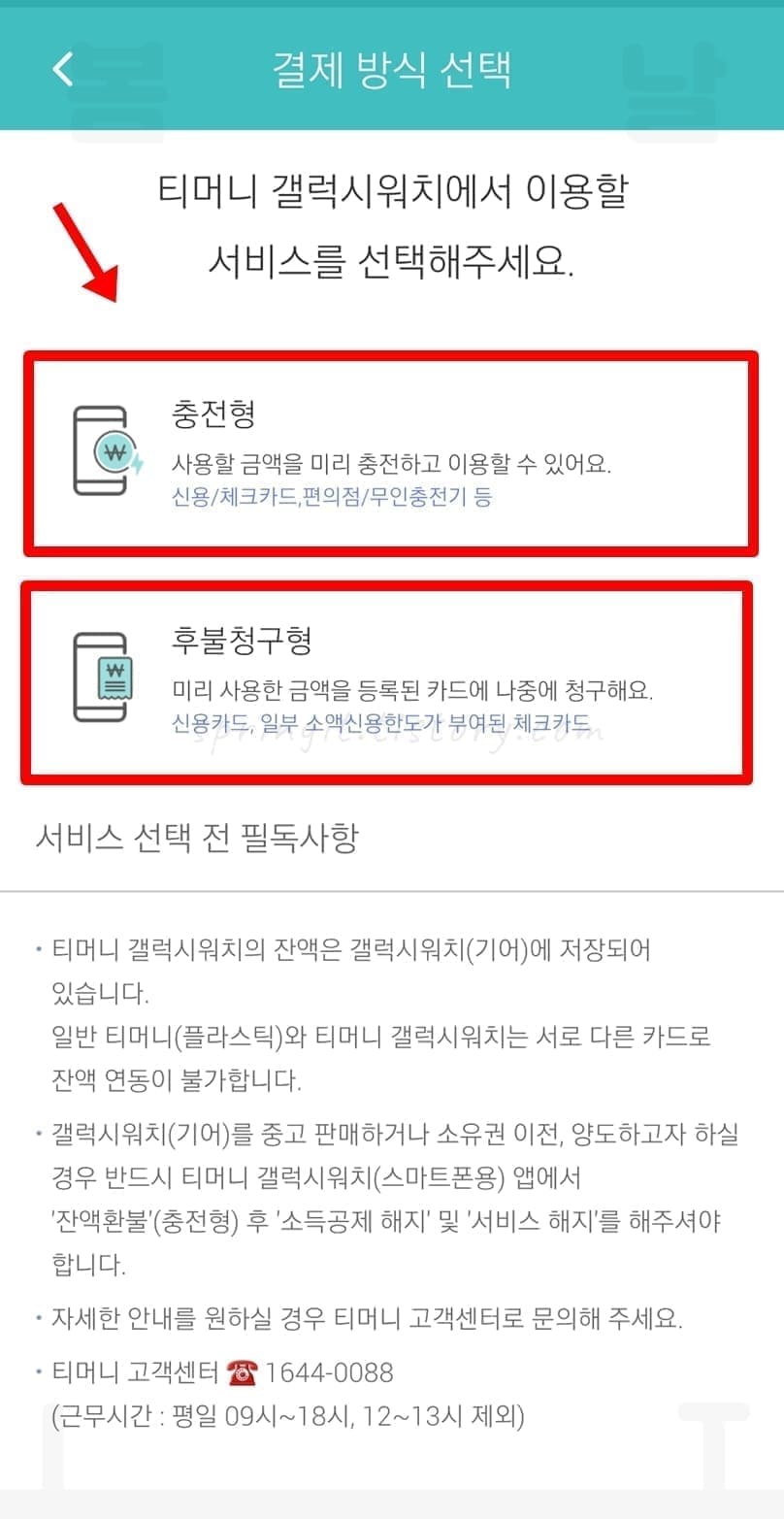 STEP 02. 갤럭시워치 티머니 결제 방식 선택하기