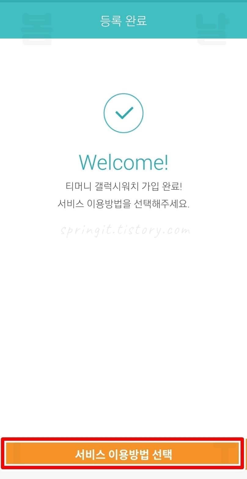 1. 등록 완료 화면에서 서비스 이용방법 선택을 누릅니다.
