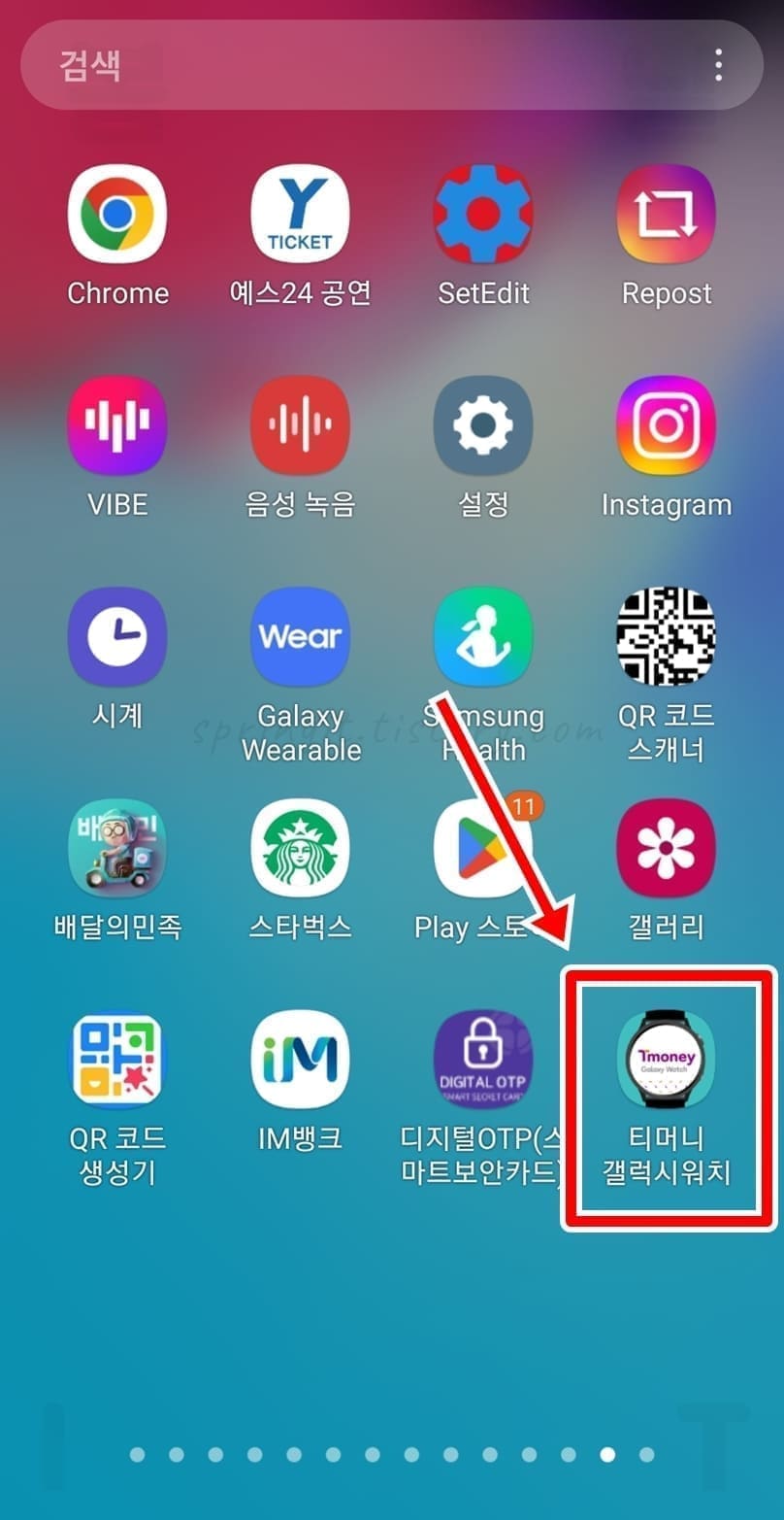 2. 티머니 갤럭시워치 전용 어플을 검색 후 설치합니다.